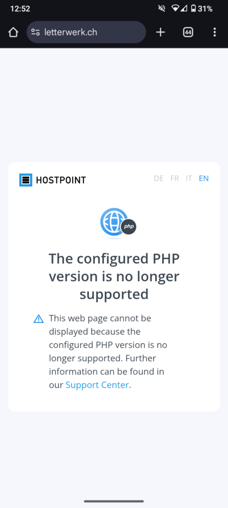 Link zu letterwerk.ch aber kaputt. PHP nicht aktualisiert…