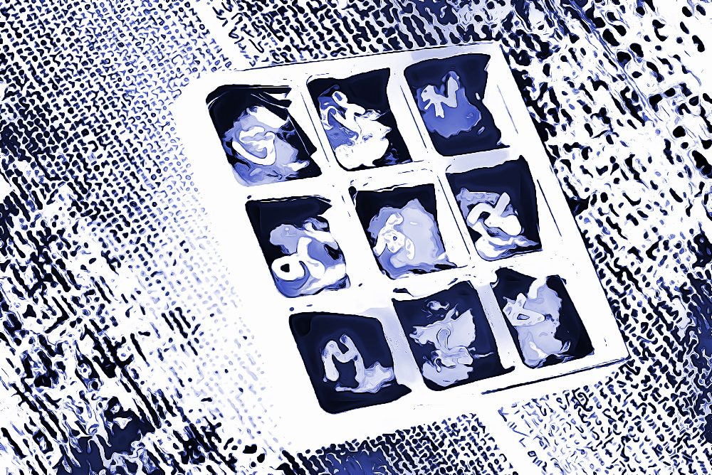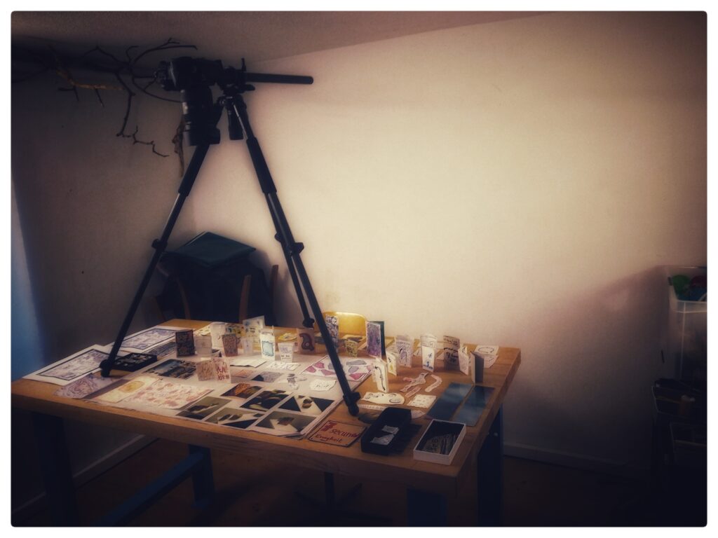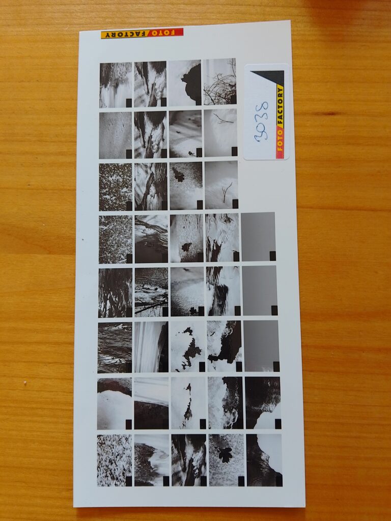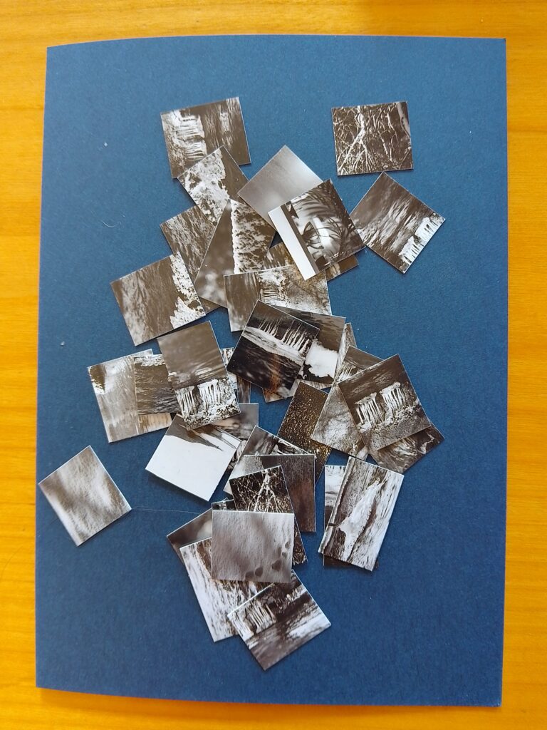 Ausgeschnitten. Neu sortiert. Die Fotos sind fingernagelgross. Auf einer A6-Karte geordnet präsentiert.